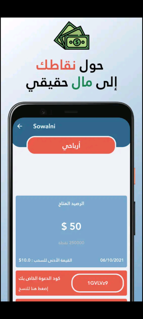 كيف تجني المال فعليًا؟بمجرد تسجيل الدخول، ستجد أمامك عدة اختيارات:اختيار المجال الذي ترغب بالإجابة فيه (رياضي، علمي، ثقافي…)اختيار المستوى (مبتدئ – متوسط – محترف)البدء بالإجابة على الأسئلة وكسب النقاطكل سؤال يحمل قيمة معينة. فمثلًا، أسئلة المستوى المبتدئ قد تعطيك 0.10$ بينما المستوى المحترف قد يصل إلى 1$ أو أكثر للسؤال الواحد.سحب الأرباح من التطبيقبمجرد وصولك إلى الحد الأدنى للسحب (10 دولارات)، يمكنك اختيار إحدى الطرق التالية لسحب أموالك: