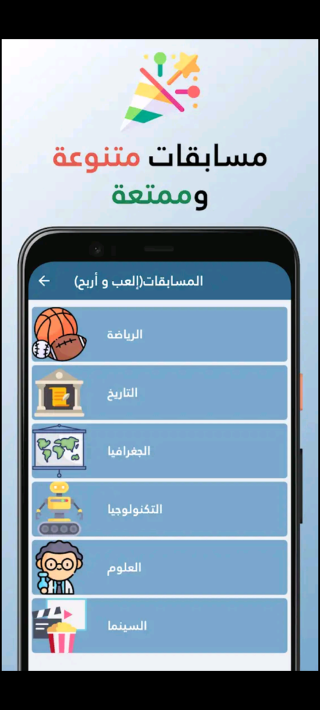 أسئلة و مسابقات متنوعة و ممتعةأسئلة و مواضيع مختلفة و متنوعة تناسب جميع الفئات العمرية و الأذواق . ممتعة للتسلية . على مراحل متعددة (سهلة ، متوسطة ، صعبة ، محترف) كل مرحلة تساوي عدد معين من النقاط ، أكبرهم المحترف . جاوب عليها صح و جمع النقاط